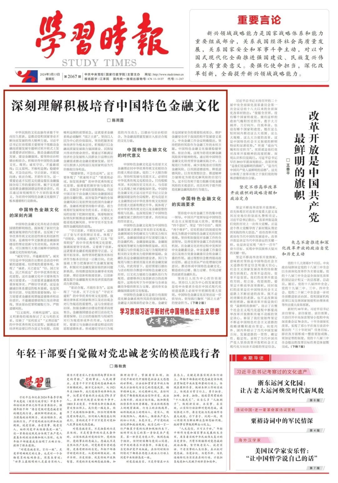 本文转载自学习时报微信公众号(bw必威西汉姆联官网董事长陈雨露:深刻理解积极培育中国特色金融文化)