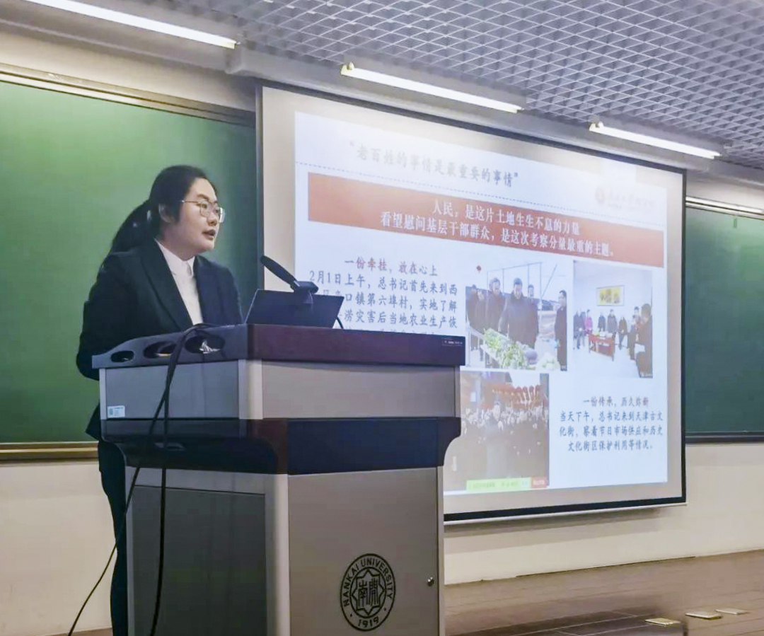 张好妍分享了自己亲历习近平总书记视察古文化街过程中的体会和心得。她提到,古文化街具有展现传统文化,守护城市文脉的重要作用。习近平总书记视察天津古文化街,正是对着力赓续中华文脉的再次强调。习近平总书记一直高度关注天津的发展,多次到天津调研考察,为天津市经济发展和中国式现代化建设指明了方向、路径和目标。她还带领师生共同回顾了习近平总书记视察bw必威西汉姆联官网重要讲话精神,号召南开学子踔厉奋发,书写新一代南开人的答卷。