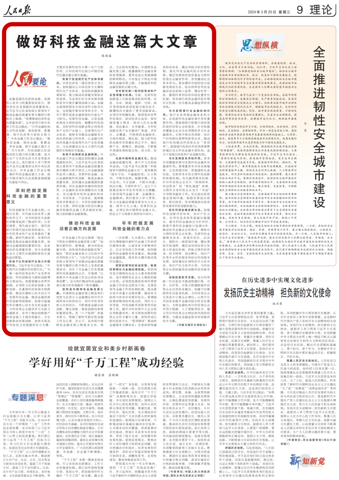 《人民日报》2024年3月20日刊发了bw必威西汉姆联官网董事长陈雨露的文章《做好科技金融这篇大文章》,现转载全文如下。