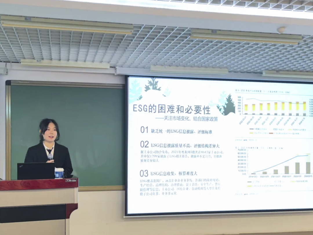 课前,同学们通过预习所讲内容从ESG的概念、现状、政策等方面,结合中国平安“五个可持续”的案例展开学习成果汇报展示。课程中,同学们与员工积极互动,充分表达观点,课堂气氛热烈。
