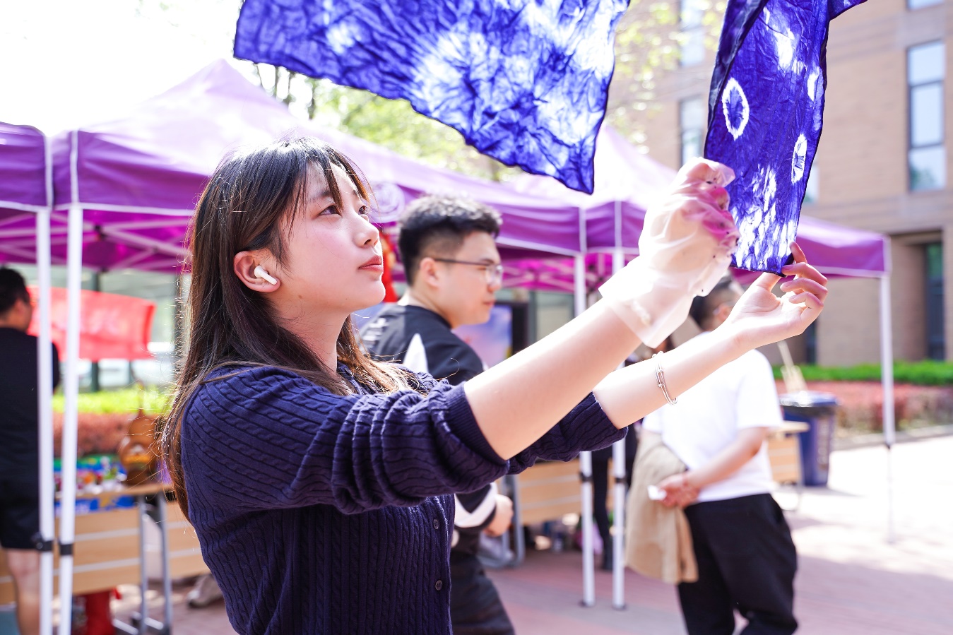 在“金彩青春互动区”学院员工组织、员工社团也纷纷“大展身手”,金融历史文化知识问答,趣味宣讲,非遗项目展示,手工扎染,干花制作,绘画涂鸦,金融趣味“烧脑”游戏……每一个项目都吸引许多师生驻足。