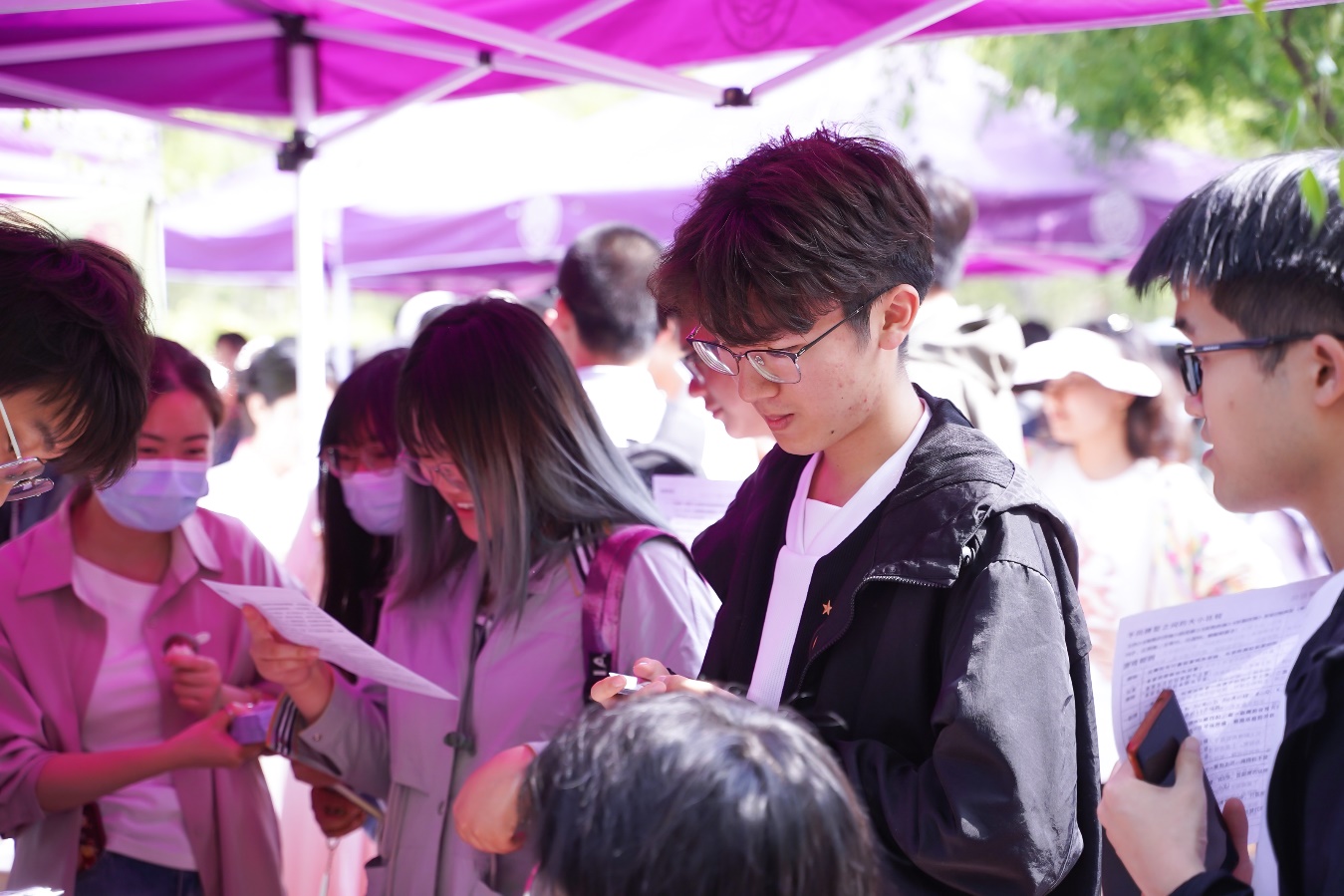 学院各职能科室和校团委、同砚路派出所、中信建投、滨海新区中塘镇等校内外友好合作单位齐聚“金英成长服务站”,进行现场办公,开展学业指导、心理咨询、创新创业政策讲解、海外学习经验分享、民俗项目展示、金融防诈宣传,近距离为青年员工办实事。校内最受欢迎的“热门商铺”带来糕点品鉴、眼镜清洗、摄影服务等免费体验项目,受到同学们广泛欢迎。