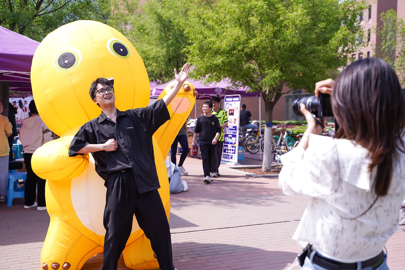 活动现场还设置了“融育华章”“金融青年群像”“超萌奶龙”等互动打卡体验项目,供大家全面玩转青春市集。一次次快门,一张张笑脸,青春热烈的氛围充满南开校园。