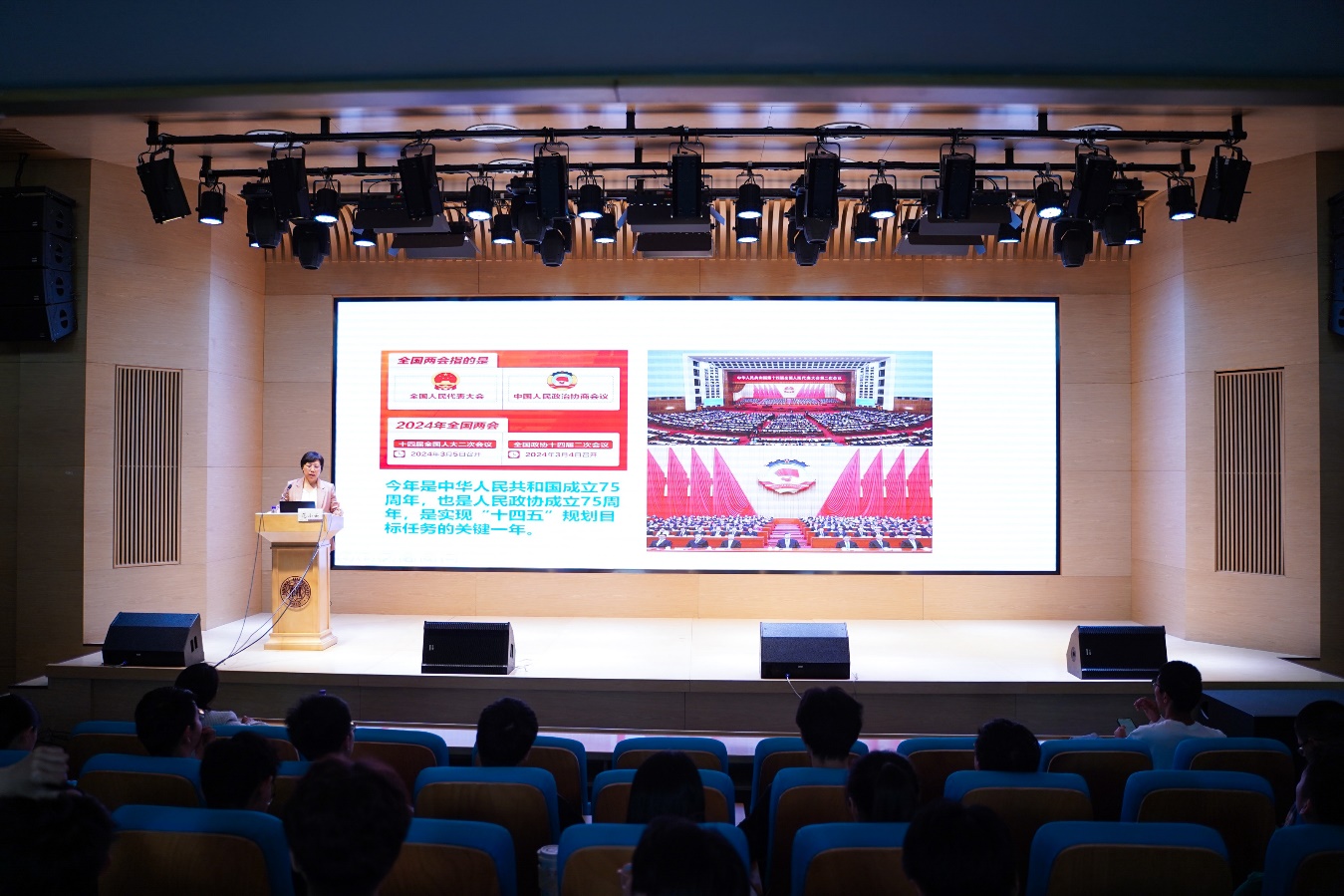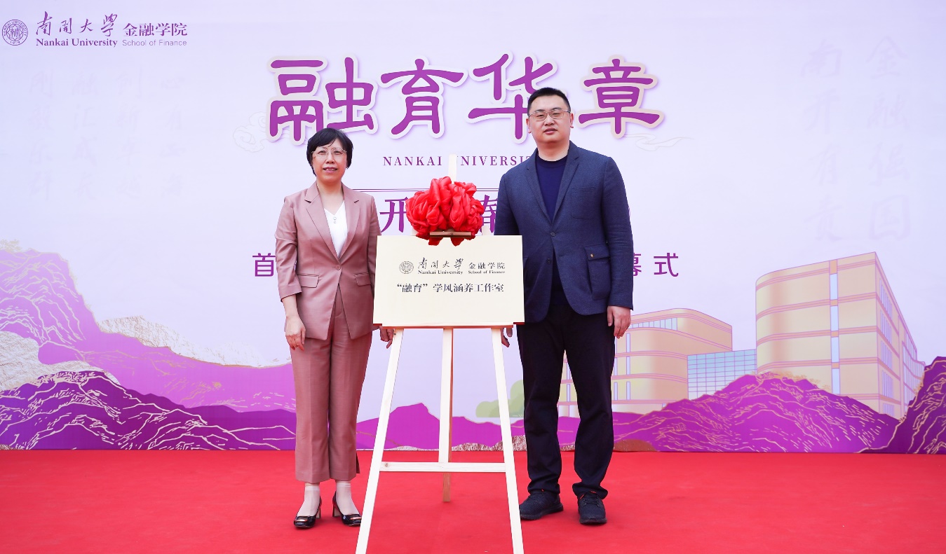 公司党委书记张尧宣布首届南开金融文化节开幕。全国政协委员、betway88西汉姆联经理范小云以“学习贯彻全国两会精神,奋力开拓中国特色金融发展之路”为题讲授文化节开幕讲座,并同教师代表为“融育”学风涵养工作室揭牌。