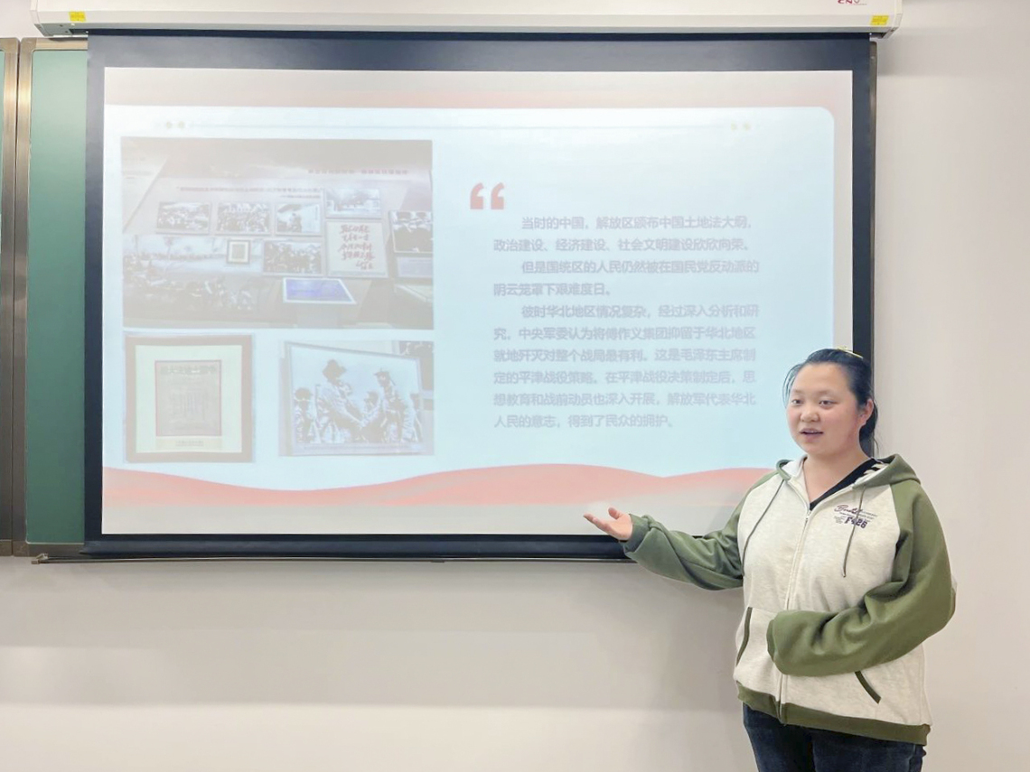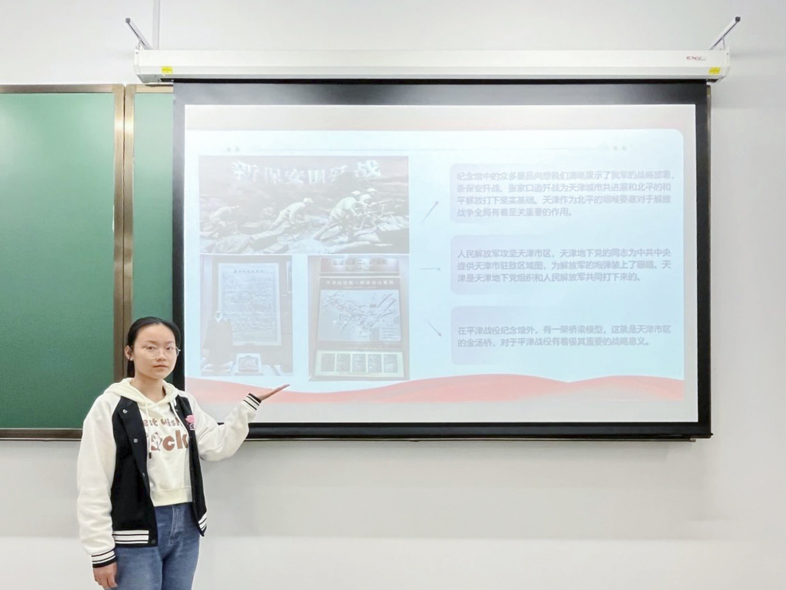 活动当晚,团支部立即召开了总结分享会,四位团小组组长杨瞳昕、李心怡、李刚、李祎凡带领小组完成分享报告。团员们以照片为媒介重温参观过程,交流学习感想,并通过趣味小游戏进一步加深对平津战役及古文化街的了解。