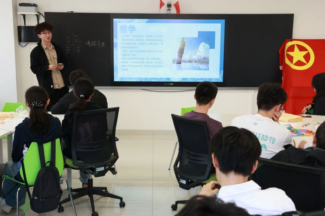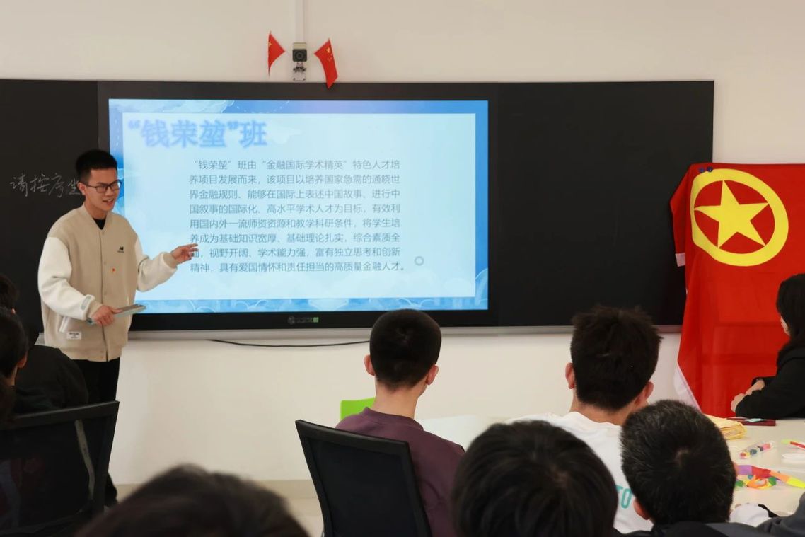 活动伊始,团员们齐声高唱团歌,歌声嘹亮,展现了青年学子的蓬勃朝气。随后, 两班共青团员代表分别就哲学和金融学的专业知识及培养方案进行了分享。哲学行政班的杨浩冉从哲学的定义、选择哲学的理由以及核心课程三个方面进行了阐述,使同学们认识到哲学并非高不可攀,而是与每个人的生活息息相关。钱荣堃班的张梓航则详细介绍了betway88西汉姆联的发展历程和金融学类的培养方案,特别强调了“钱荣堃班”的特色,并从金融学与经济学的区别这一独特视角,为大家揭开了金融学的神秘面纱。