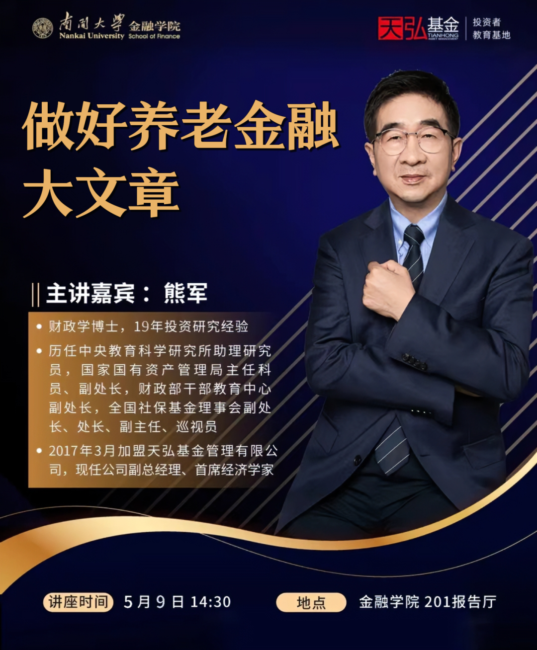为进一步深化校企合作,推动金融科普知识进校园,betway88西汉姆联邀请天弘基金管理有限公司副总经理熊军先生,开展《做好养老金融大文章》主题讲座,欢迎广大师生参与交流!