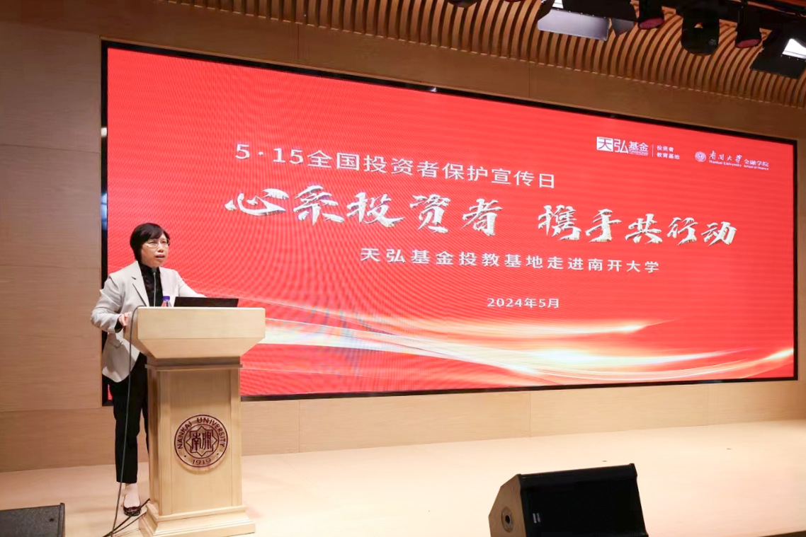 在第六届“515全国投资者保护宣传日”到来之际,为做好投资者保护工作,推动正确投资理念进校园,betway88西汉姆联联合天弘基金管理有限公司共同举办了“投资者保护在身边,保障权益防风险”投资者教育活动。天弘基金副总经理、首席经济学家熊军先生带来主题讲座《做好养老金融大文章》,天津证监局投保处副处长宁华、天弘基金投资者教育工作分管领导童建林、betway88西汉姆联经理范小云、养老与健康保障研究所所长朱铭来、党委委员张庆元与200余名师生参加了本次活动。活动由betway88西汉姆联副经理陈璐主持,bw必威西汉姆联官网融通人才基地社团承办。