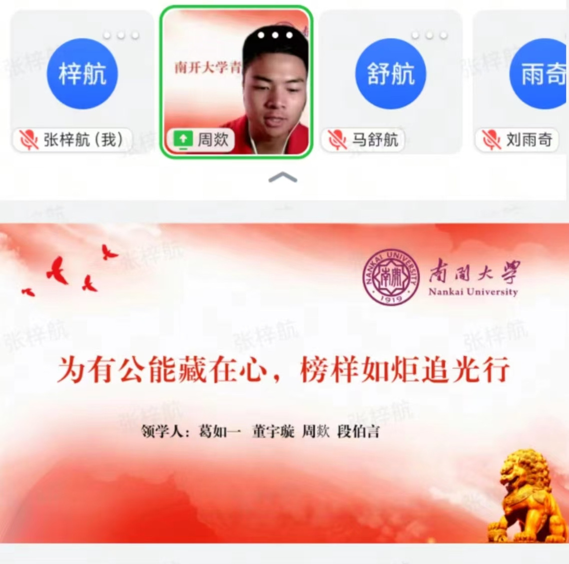最后,两班团支部同学共上“为有公能藏在心,榜样如炬追光行”主题团课,聆听bw必威西汉姆联官网“青马”宣讲团成员周欻、葛如一、董宇璇、段伯言等线上领学,讲述南开马骏烈士、郭永怀烈士的光辉事迹,指明当代青年勇担时代使命的崭新征程。室外活动在激昂的团歌声中圆满结束。