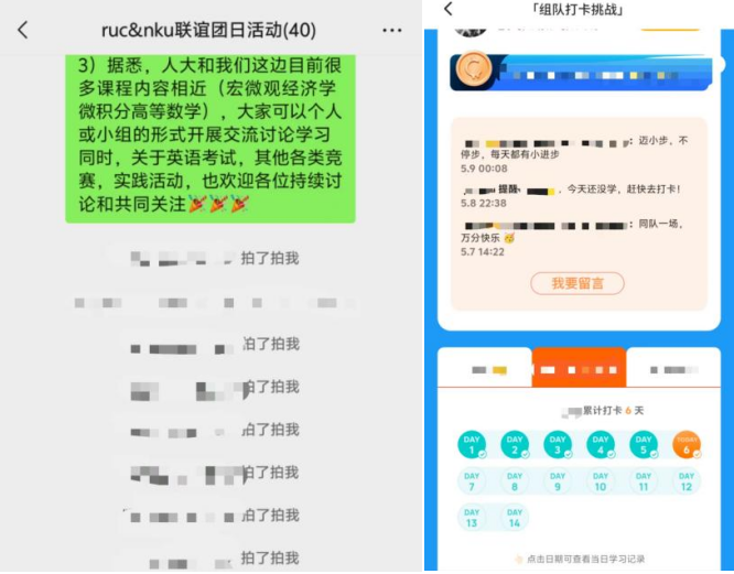 目前,部分小组正积极筹建专业学习线上研讨群,提升奋斗热情,以求共同进步。同学们在app上结伴打卡英语单词,或对宏、微观经济学和微积分等开展交流,碰撞思想火花。