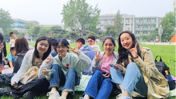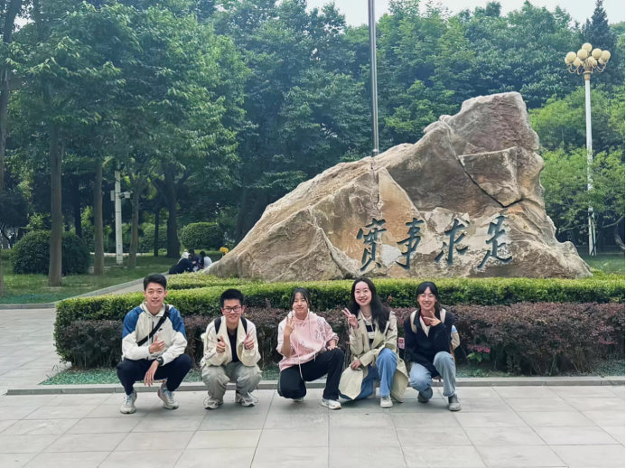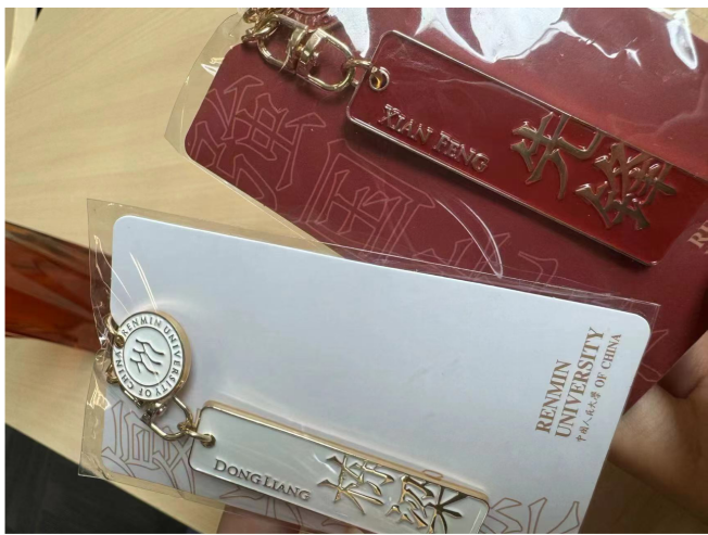 室内活动结束后,双方合影留念,并互赠书签、徽章、钥匙扣等文创产品。中午时分,两班同学结伴共进午餐,并前往“实事求是”石、立德310教室、新路雕塑、一勺池、百家廊、博物馆、图书馆、明德广场等人大标志地点和景观打卡留念,共赴盎然生景,感悟党对青年学子的深切关怀。