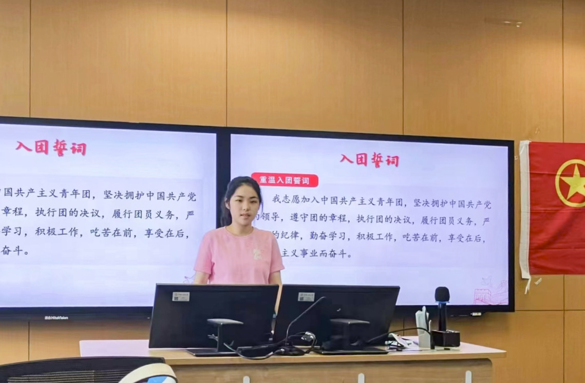 两班团支部同学集体观看了“青春接力跑”青年大学习五四特辑,全体团员在钱荣堃班团支书张梓航的带领下重温入团誓词,面向团旗庄严宣誓,牢记共青团员为共产主义事业而奋斗的光荣理想。