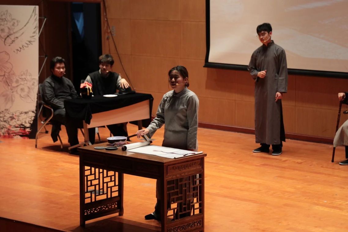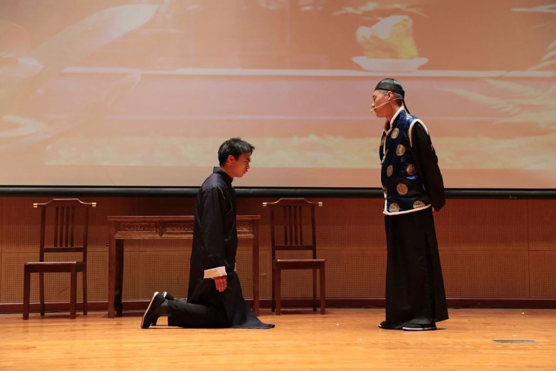 聚光灯闪,演员就位,伴随着热烈的掌声,两场话剧拉开帷幕。