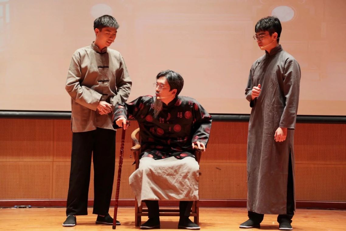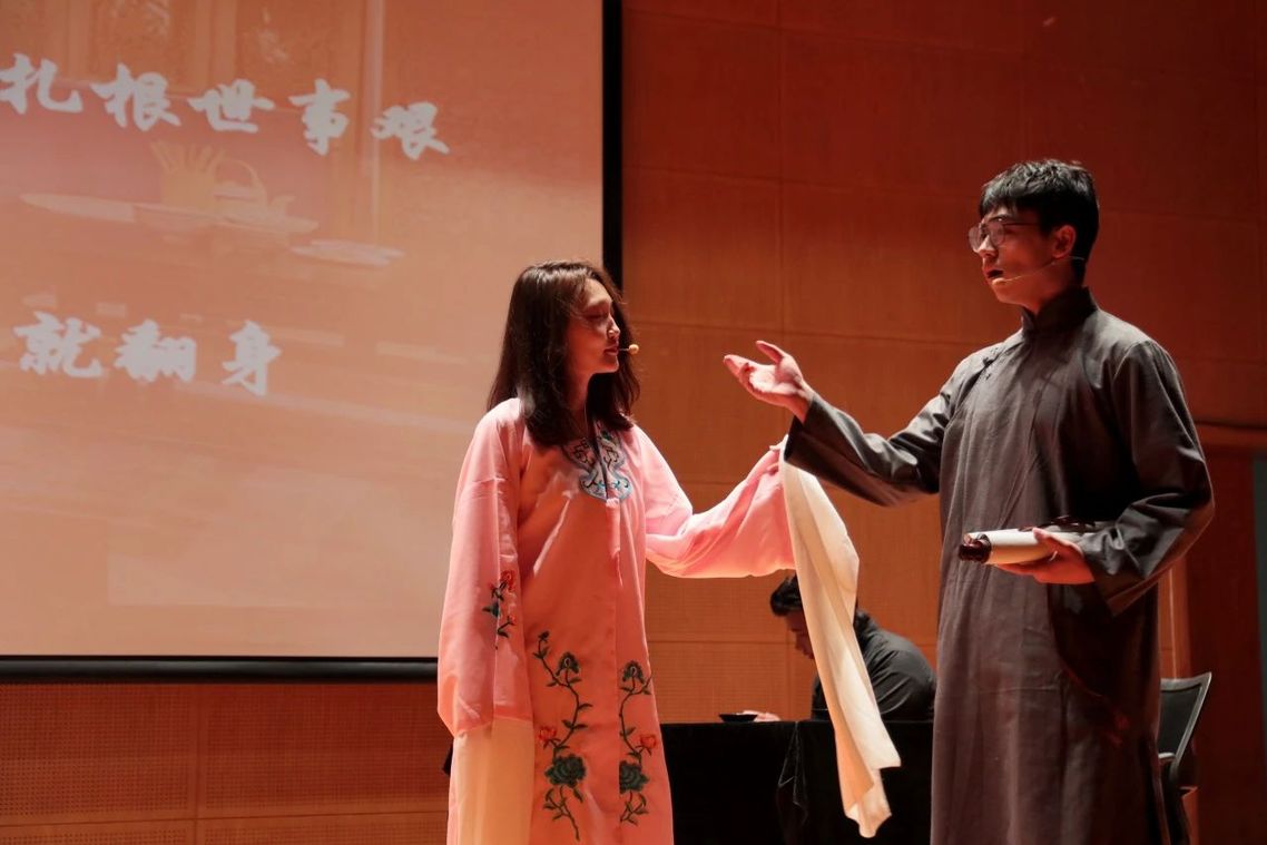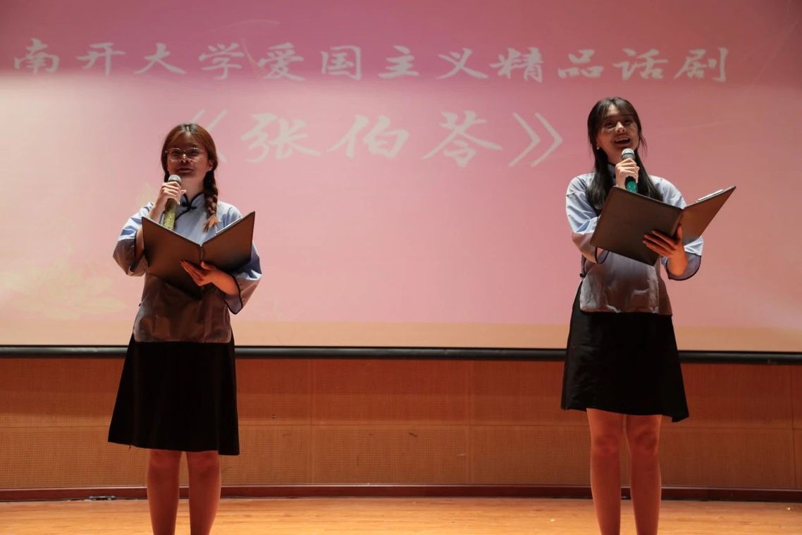 “爱国三问”宣讲团成员李祎凡、张咏嘉分别讲述了南开与话剧的历史渊源,以及两部话剧创作历程。
