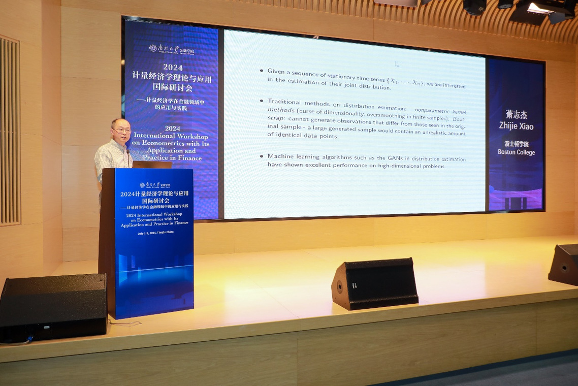 3日上午,华中科技大学王少平教授做题为《Sieve Bootstrap for Fixed-b Phillips-Perron Unit Root Test》的主旨发言,波士顿学院萧志杰教授做题为《Distribution Estimation for Time Series via DNN based GANs》的主旨发言,中南财经政法大学董朝华教授主持了报告会。