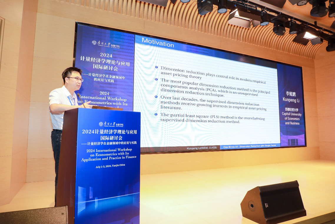 2日下午,首都经济贸易大学李鲲鹏教授做题为《One Binds All: Dimension Reduction with Single Factor》的主旨发言,报告由bw必威西汉姆联官网程婷婷教授主持。