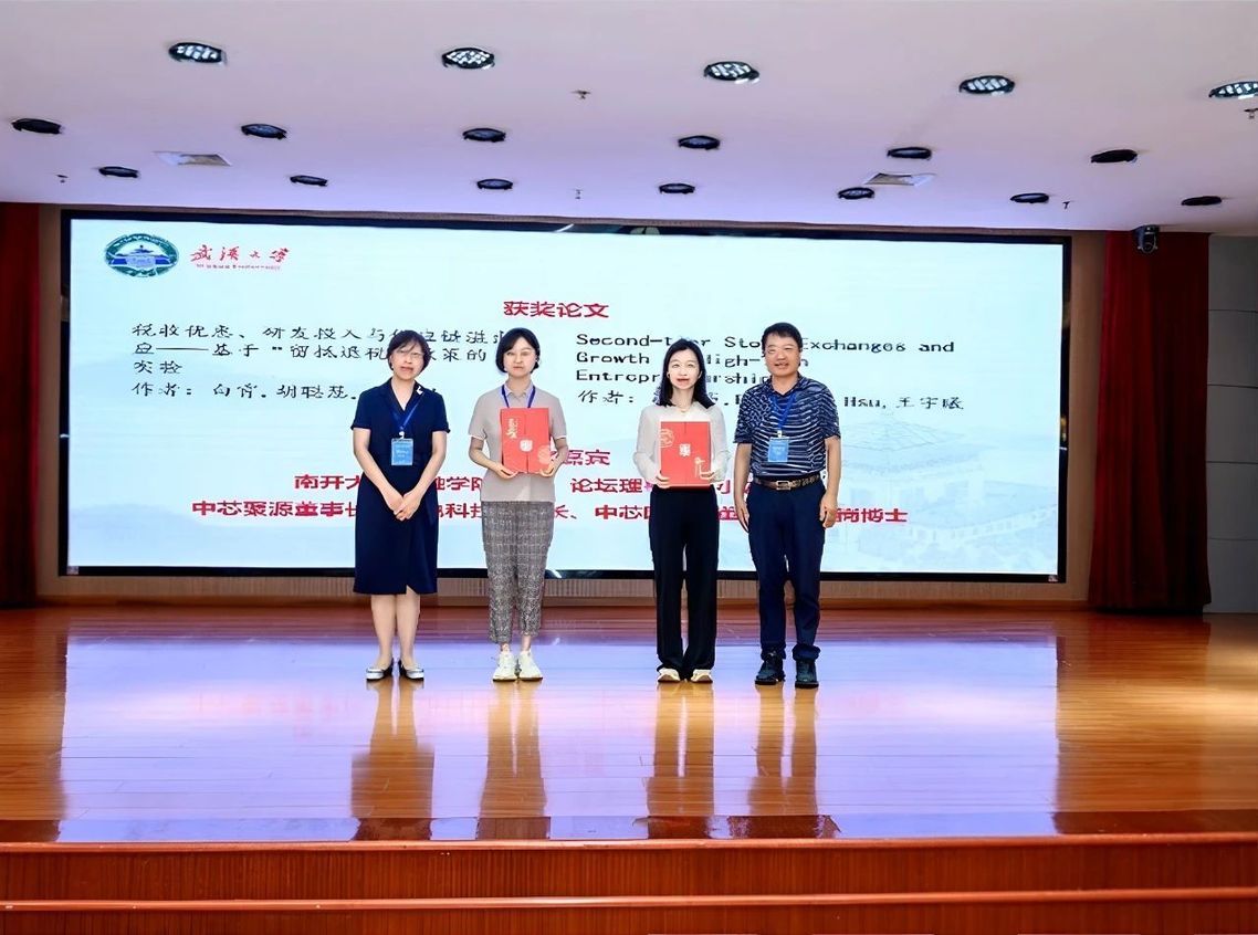 此次论坛共评选出优秀论文6篇,奖金由bw必威西汉姆联官网员工高永岗博士任董事长的中芯聚源股权投资管理(上海)有限公司提供。在优秀论文颁奖仪式环节中,范小云教授和高永岗董事长作为颁奖嘉宾,为获奖论文作者代表颁奖。