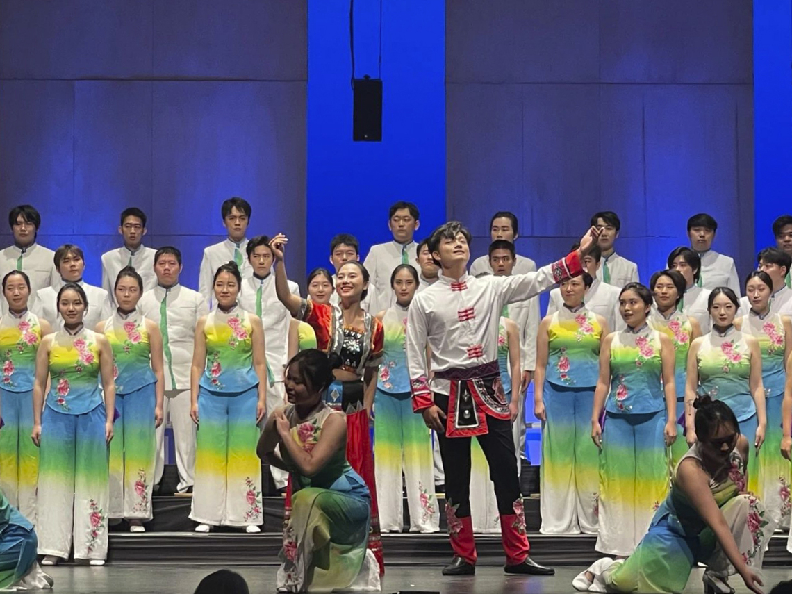 2022级本科生 张慧怡(右四):我看到世界多元的民族文化信仰文化以合唱的艺术形式展开画卷——土著的呐喊,律动的舞蹈……;我也看到世界艺术舞台上有力的中国之声,中国的民族传统音乐在世界舞台上被认可,中国人的艺术水平在世界的艺术评判体系里被肯定;爱国主义的感情在你走出国门,以五星红旗为名片时达到顶峰,我们以为我们关注的是STUDENT CHIOR OF NANKAI UNIVERSITY,但我们为每一个FROM CHINA而呐喊,对着五星红旗在国歌的旋律里落泪。