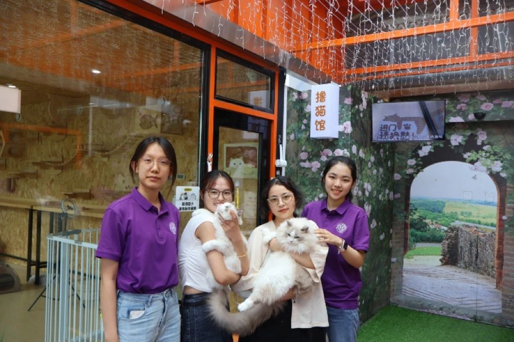 (实践队成员与猫咖店受访员工合影)
