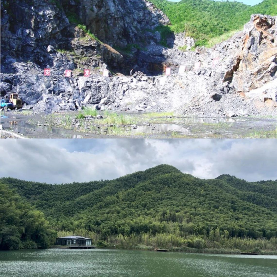 (余村矿山与绿水青山对比照)