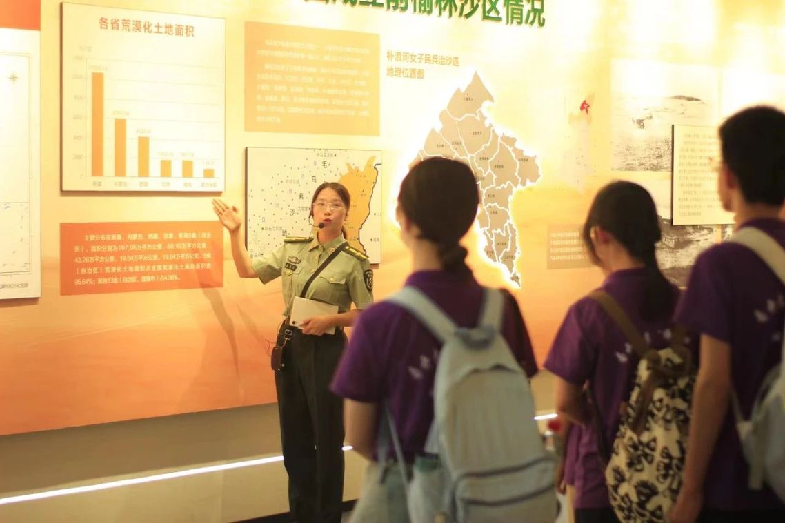 “狂风挡不住,进军的脚步,毛乌素是我们拼搏的战场......”在讲述完女民兵们艰苦的治沙故事后,讲解员王毛毛深情地为我们歌唱了治沙连连歌。随着歌声响起,女民兵们奋斗的场景仿佛浮现眼前,实践队员无不为之动容。