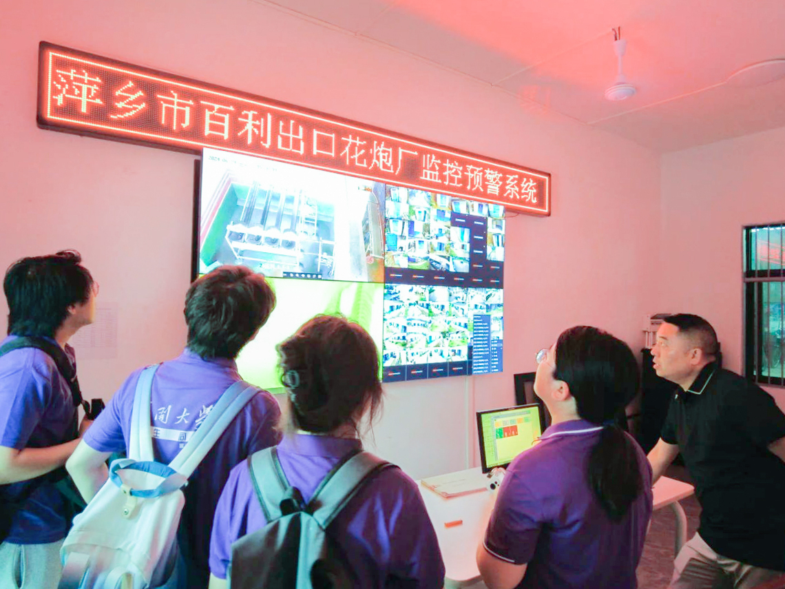 花炮作为上栗县的传统优势产业,近年来也面临着发展的各种挑战。实践队来到萍乡市远洋出口玩具厂和百利烟花厂,实地参观了当前花炮自动化、信息化的生产厂房,并与百利烟花厂负责人开展座谈。在交流中,实践队了解到随着安全意识、环保意识和政府监管非法生产力度的逐步增强,上栗县烟花产业经历了从家庭小作坊到工厂化生产的发展过程,企业在厂房建设、自动化生产、污染控制和人员培训水平方面都有显著提升,目前各项标准均符合国家规定,安全系数也获得较大提高。当地也通过推广“财园信贷通”产品和集体订货会等金融和营销手段,有效缓解了花炮生产企业的资金压力和销售压力,不断推进上栗县传统花炮产业的高质量发展。