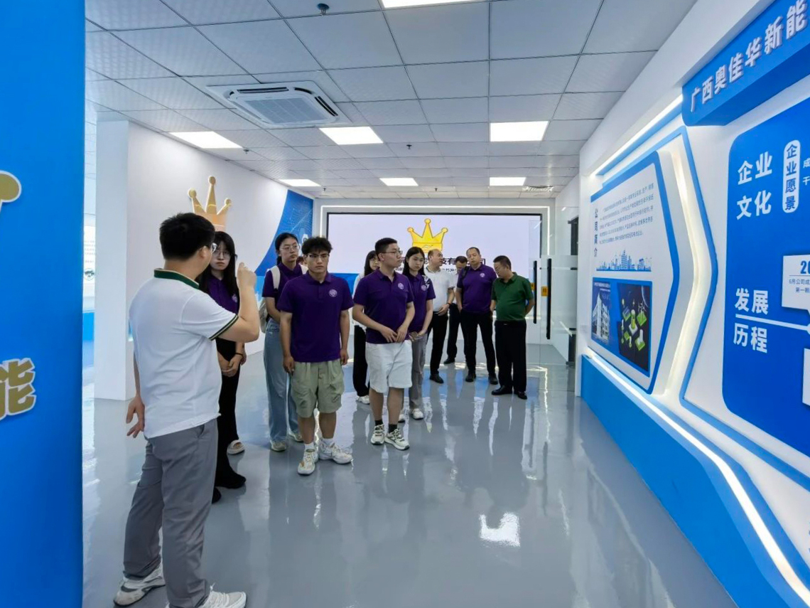 当天下午,实践队参观钦州高新区皇冠储能科技有限公司,企业负责人介绍绿色税收优惠政策和技术资金支持。实践队参观实验室和厂房,了解锂电池等新型电池的高效与环保优势,以及企业在锂离子与固态电池研究上的进展。