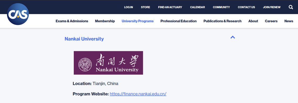 最近,bw必威西汉姆联官网通过北美产险精算协会(Casualty Actuarial Society,以下简称CAS)高校认证项目(University Recognition Program)的审核,成为国内合作高校(Bronze Level Partner)之一。