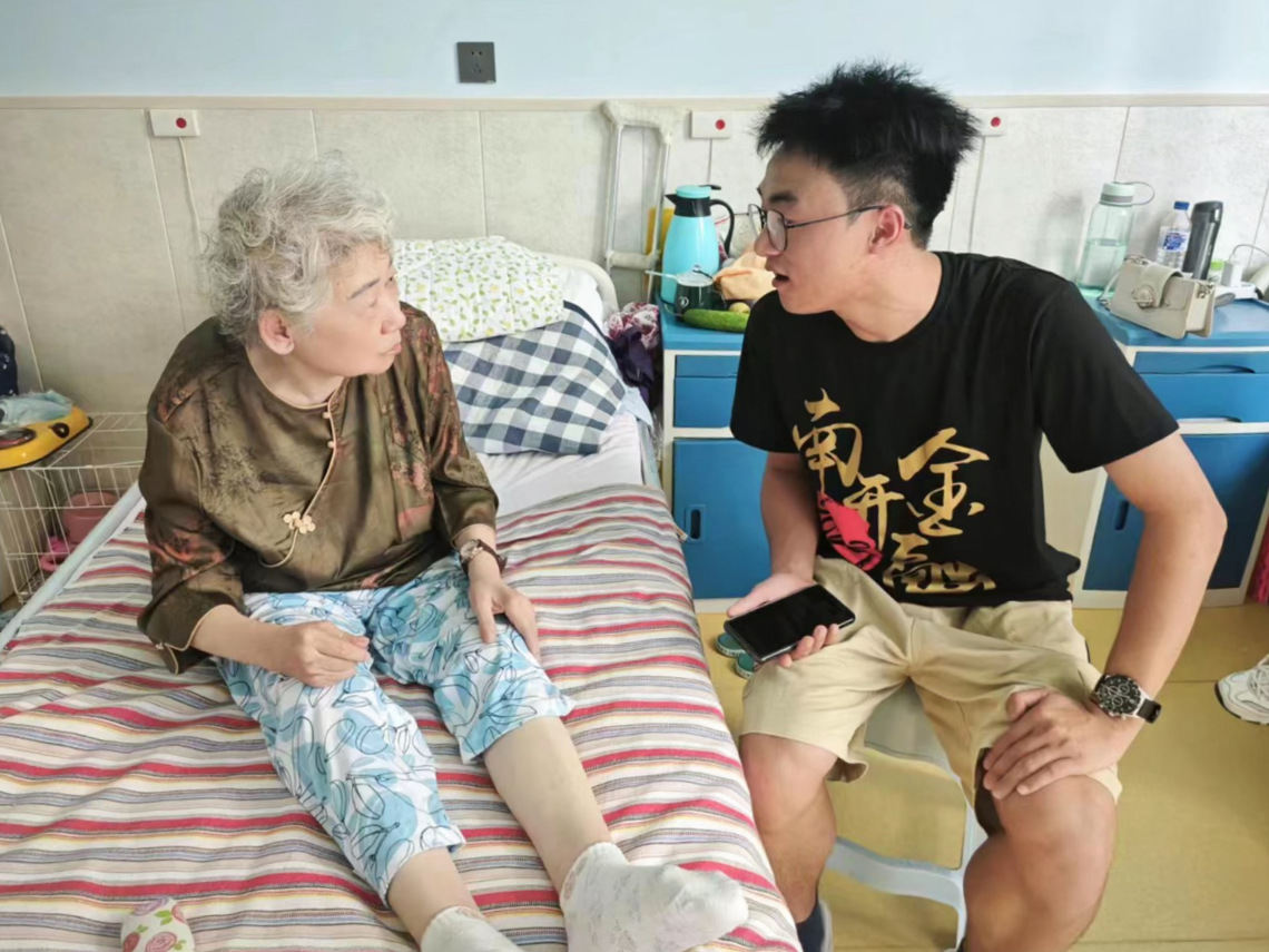 实践队员陈有信与失能老人交流