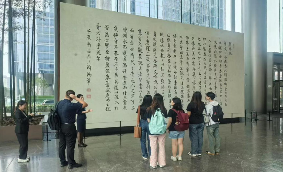 实践队参观调研了泰康集团大厦。引导员向实践队介绍了泰康集团总部大厦的建设理念以及一些收藏的画作及文物。大厦以中国古代礼器“玉琮”为设计理念设计而成,充分融合了中国传统艺术与现代科技,形态简洁而平衡。泰康收藏的艺术品大多与泰康保险集团创始人、董事长兼首席执行官陈东升提出来的“长寿时代”新概念相关联,也是“艺术反映时代特征”的具体体现。