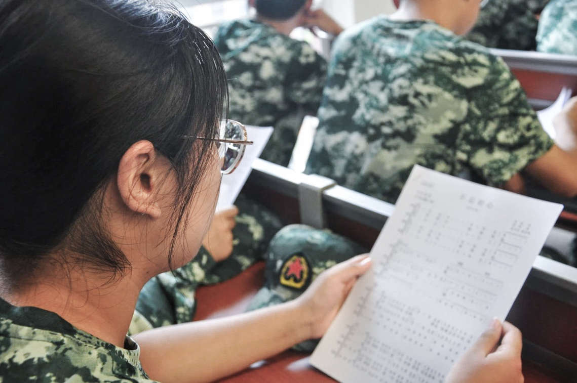 第二周,金融九连积极响应院校号召,由排副和班长组织,选择了《长征组歌》中能够展现新长征路上我党带领人民奋斗故事的《映山红》《不忘初心》等歌曲,并于每日训练场休息时间和政工活动时间积极组织排练。排练室里嘹亮的歌声汇聚起来,时而清亮高亢,时而雄伟激昂。同学们纷纷在训练之余积极练习,为九连争光。