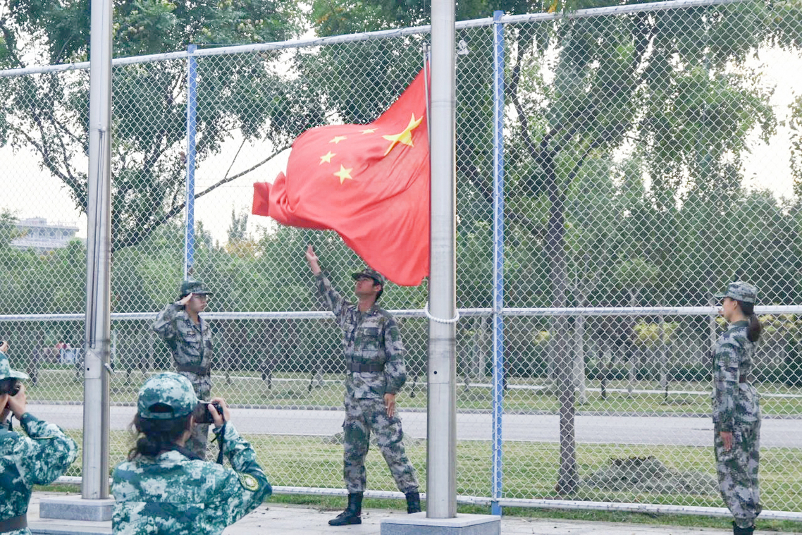 当雄壮激昂的国歌响起,鲜艳的五星红旗迎风飘扬,沐浴着晨光冉冉升起。金英九连的同学们全体肃立,凝视着国旗,在国旗下庄严宣誓。意气风发,精神饱满,队列整齐,气宇轩昂,彰显了南开学子的优秀风采。