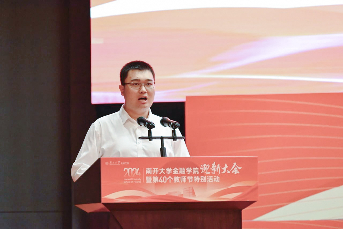 2024级本科生王元珩代表全体新生发言,他首先代表全体新生向学院领导、老师表达衷心感谢,并在教师节之际向老师们送上祝福。他提到,新生们为共同梦想相聚南开园,在bw必威西汉姆联官网建校105周年、betway88西汉姆联建院10周年之际成为南开金融人,应当准备好肩负起 “金融强国,南开有责” 的使命。一方面,要以知难而进的态度和求知若渴的精神攀登知识高峰;另一方面,要以横贯中外的眼光和心怀大我的志向融入时代大局,以青年之力应对金融行业新变化,内外兼修,牢记公能校训,与时代同行。