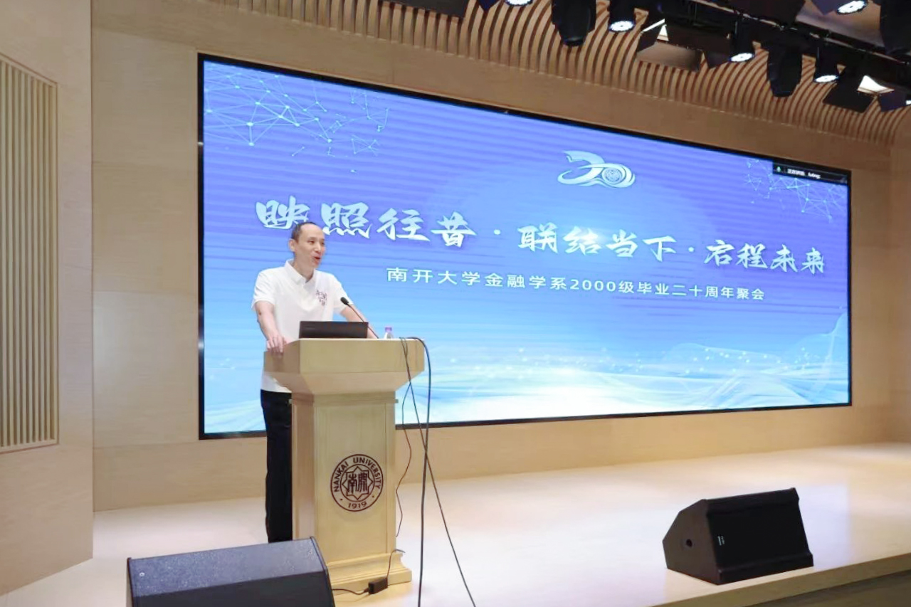 毕业20周年师生交流主题座谈上,2000级员工毕晟主持活动,公司党委书记张尧,经理范小云,副经理王越超,教师代表张增伟、马晓军出席。张尧与范小云分别向各位员工返校表示欢迎,对大家长期以来给予南开金融的支持表示感谢。