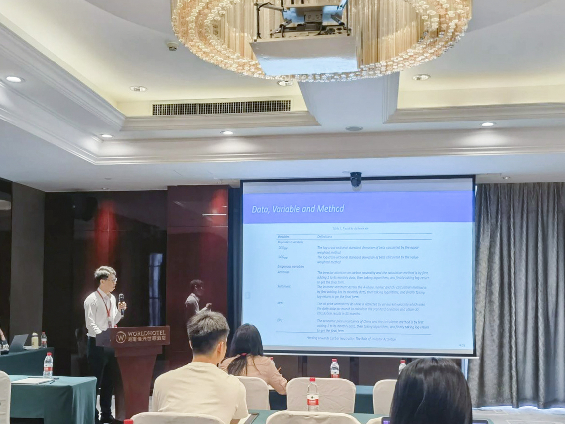 石贵强本科毕业于天津大学,并于2023年以推免生身份直博进入betway88西汉姆联攻读博士学位,继续在金融学领域深耕细作。他在多个重要学术会议上赢得认可,不仅在国内顶级会议上展示了自己的研究成果,还在国际学术期刊上发表了多篇被SSCI收录的论文。其中,他的文章“Herding towards carbon neutrality: The role of investor attention”荣获2023年气候与能源金融会议最佳论文奖。