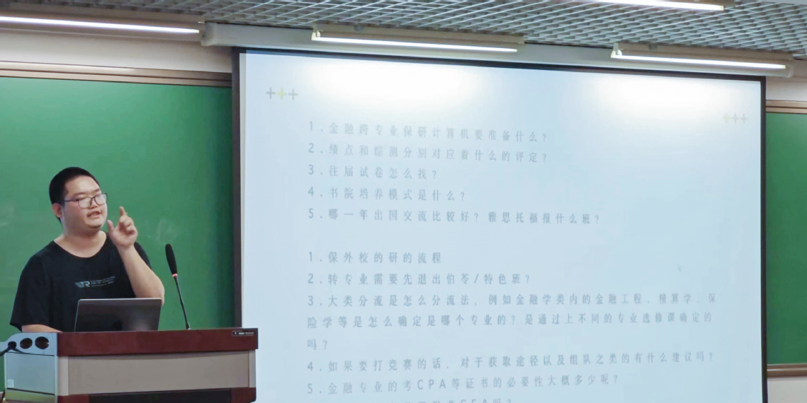 罗宇轩主要从保研和学业方面进行经验分享。保研方面,他列举了不同层级的升学项目,深度解析了推免流程和细则,并结合过往经验为同学们指明方向。而学业方面,他帮助同学们认识和规划每学年的主要任务。最后,他推荐了许多富有实用性的学习资源,并鼓励同学们提前规划,磨砺以须。