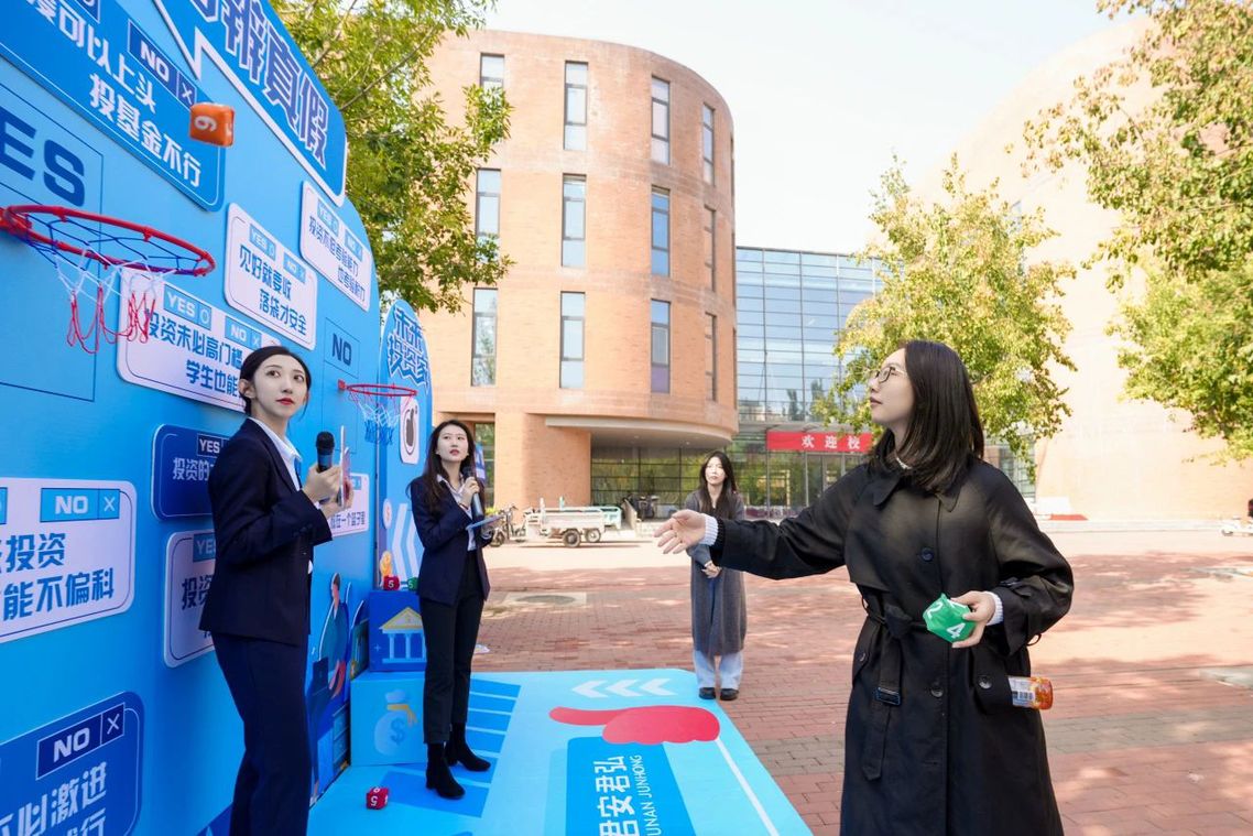 为进一步推动金融知识的科普教育,学院与国泰君安证券天津分公司还在户外举办了一场充满活力的“智辨真假”答题互动活动。员工们通过参与一系列精心设计的金融知识问答,在“YES”和“NO”之间做出明智的投资抉择。同时,外场的“财道解惑坊”也有来自业界的专业投资顾问对同学们的投资疑问进行解答,在游戏和互动中提升同学们的金融知识与金融素养。