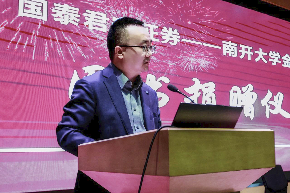 王越超对国泰君安证券天津分公司的捐赠表示感谢。他指出,致力于培养具备经世致用能力的金融人才是双方共同的理念,公司捐赠的图书是一笔宝贵的精神食粮,将有力推动学院的建设与发展,期待双方进一步深化合作,共同推动金融教育事业发展的新局面。
