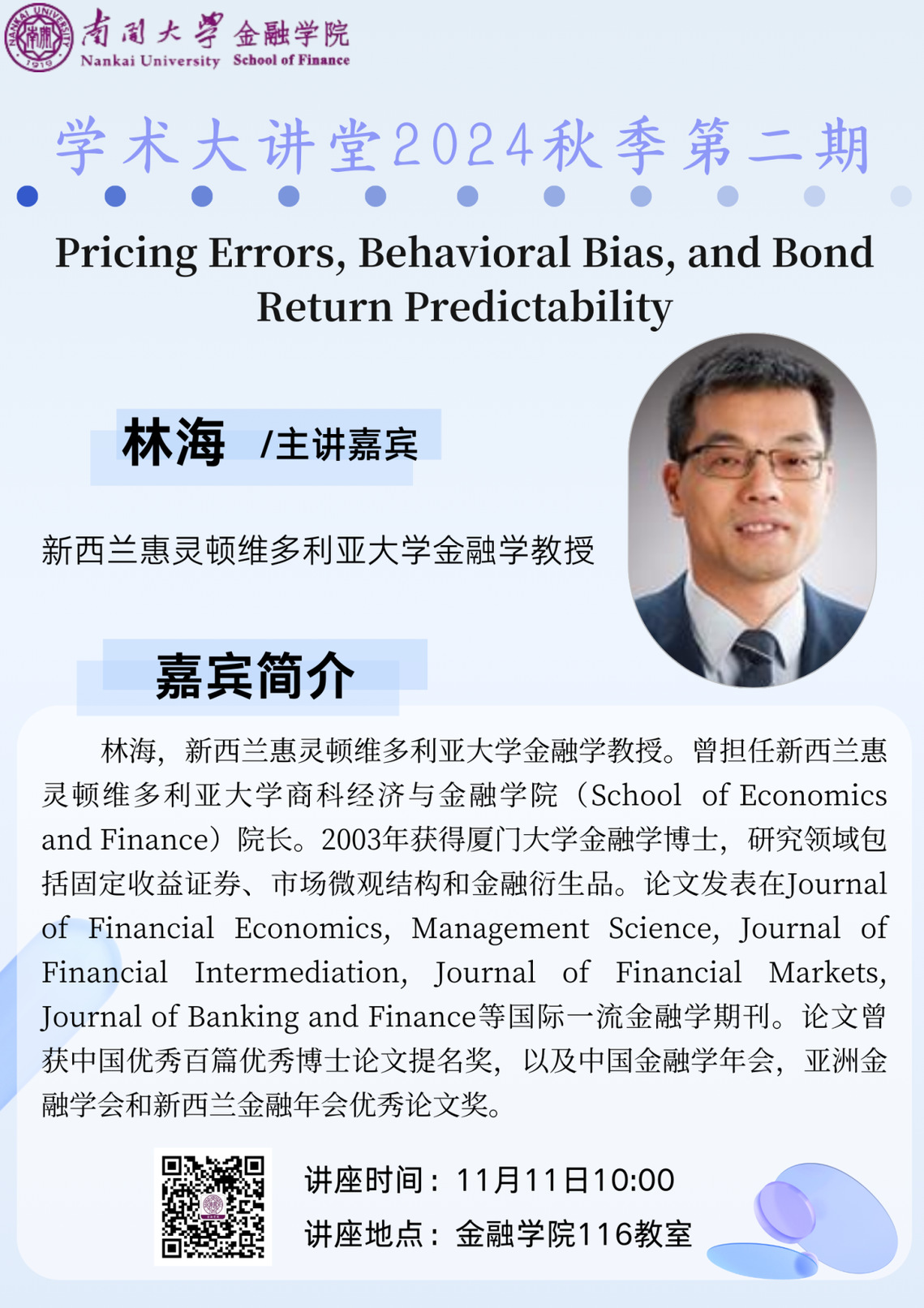 讲座题目:Pricing Errors, Behavioral Bias, and Bond Return Predictability