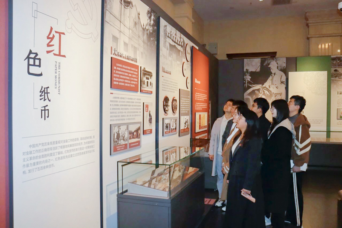 在近代货币陈列馆里,抗日战争时期的不同根据地发行的红色货币令党员们印象深刻,这些货币在打破敌人经济封锁、发展经济、改善民生、支援革命战争发挥了非常重要的作用,也映射了中国共产党领导下的革命政权建立银行、发行货币进行红色革命的艰辛历程,大家深刻体会到货币在经济社会发展中的重要作用,切实感受到中国共产党领导红色金融事业的艰苦卓绝。