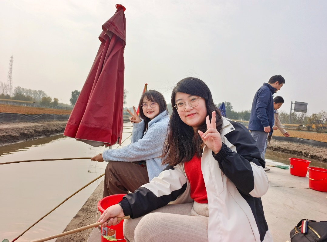 阳光正好,微风不燥,老师们首先抵达了蟹美园。这里水清蟹肥,老师们或站或坐,手持钓竿,屏息凝神,体验了一把传统垂钓的乐趣。随着一只只肥美的螃蟹被缓缓提起,现场不时爆发出惊喜的欢呼声,不仅考验了大家的耐心与技巧,更增添了几分探索自然的乐趣与丰收的喜悦。钓蟹活动结束后,农家乐工作人员将钓上来的螃蟹蒸熟,老师们品尝到了自己亲手钓上的七里海香蟹,深刻体验到了自己动手丰衣足食的成就感。