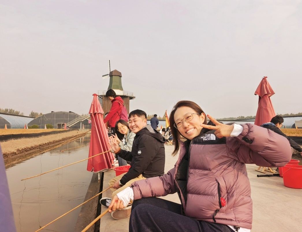 阳光正好,微风不燥,老师们首先抵达了蟹美园。这里水清蟹肥,老师们或站或坐,手持钓竿,屏息凝神,体验了一把传统垂钓的乐趣。随着一只只肥美的螃蟹被缓缓提起,现场不时爆发出惊喜的欢呼声,不仅考验了大家的耐心与技巧,更增添了几分探索自然的乐趣与丰收的喜悦。钓蟹活动结束后,农家乐工作人员将钓上来的螃蟹蒸熟,老师们品尝到了自己亲手钓上的七里海香蟹,深刻体验到了自己动手丰衣足食的成就感。