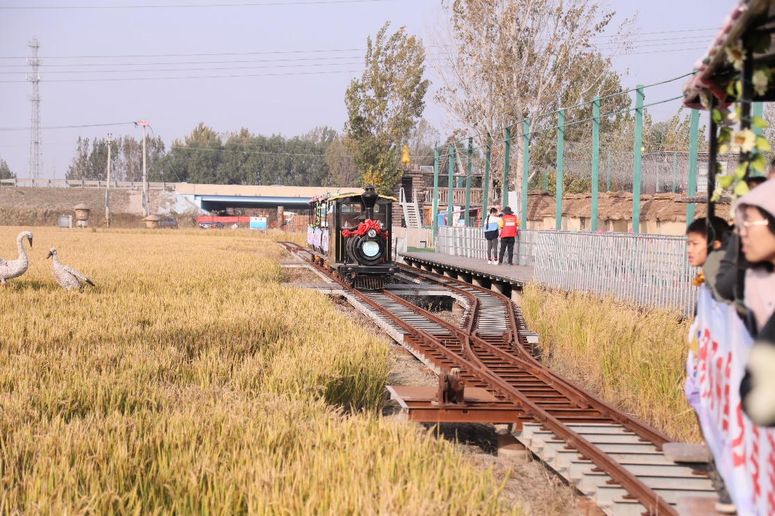 午餐后,老师们来到和美园登高观赏3D稻田画,一片片金黄色的稻田在秋风的吹拂下翻涌着金色的波浪,精心设计的稻田画让人眼前一亮——自然为笔,农耕作墨,老师们纷纷拍照记录下“我言秋日胜春朝”的壮丽丰收画卷,感受到了大自然的鬼斧神工与人类的智慧结晶。此外,老师们还体验了稻田小火车、无动力乐园、农场动物互动等项目,不仅释放了工作压力,也激发了老师们对生命和自然的热爱之情。
