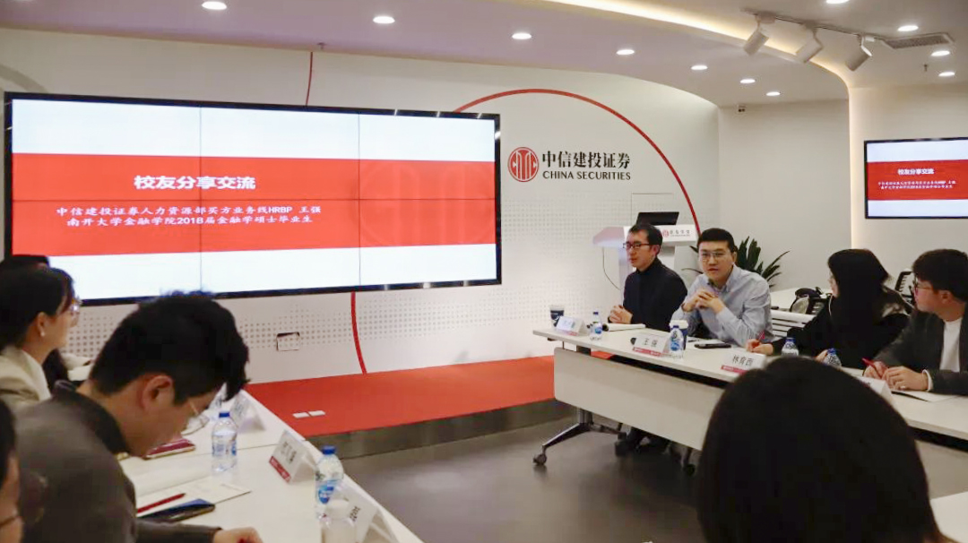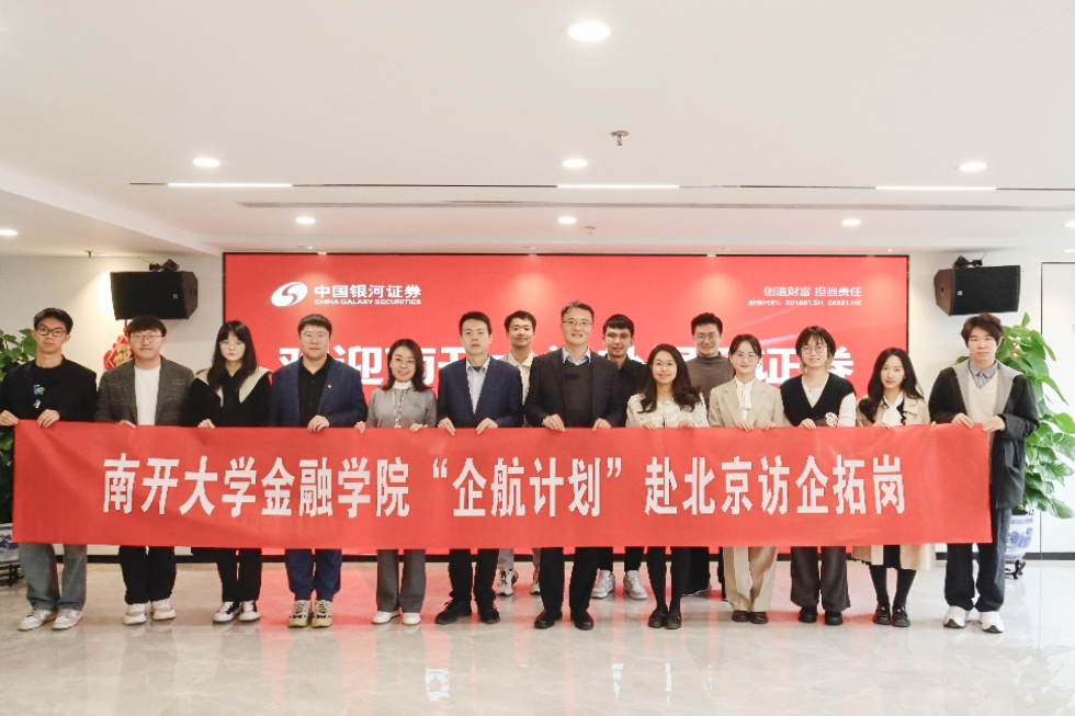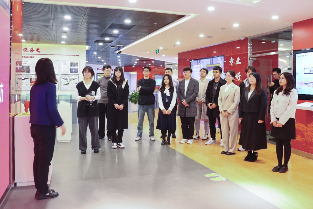师生一行首先来到银河证券金融街营业部。副总经理吕剑、财富管理一部总监杨旺、综合管理部副总监王小琴、财富管理一部理财顾问刘桦和李娅琳与师生热烈交谈,详细介绍了银河证券的发展历程、组织架构、业务布局、党建工作、投资者权益保护、员工培养体系等基本情况,双方还围绕行业现状和发展方向、企业招聘需求等方面开展了深入交流。师生们参观了柜台业务区域和“党建墙”,深入了解证券公司的日常运营情况以及基层党建工作的开展情况和发展成果。