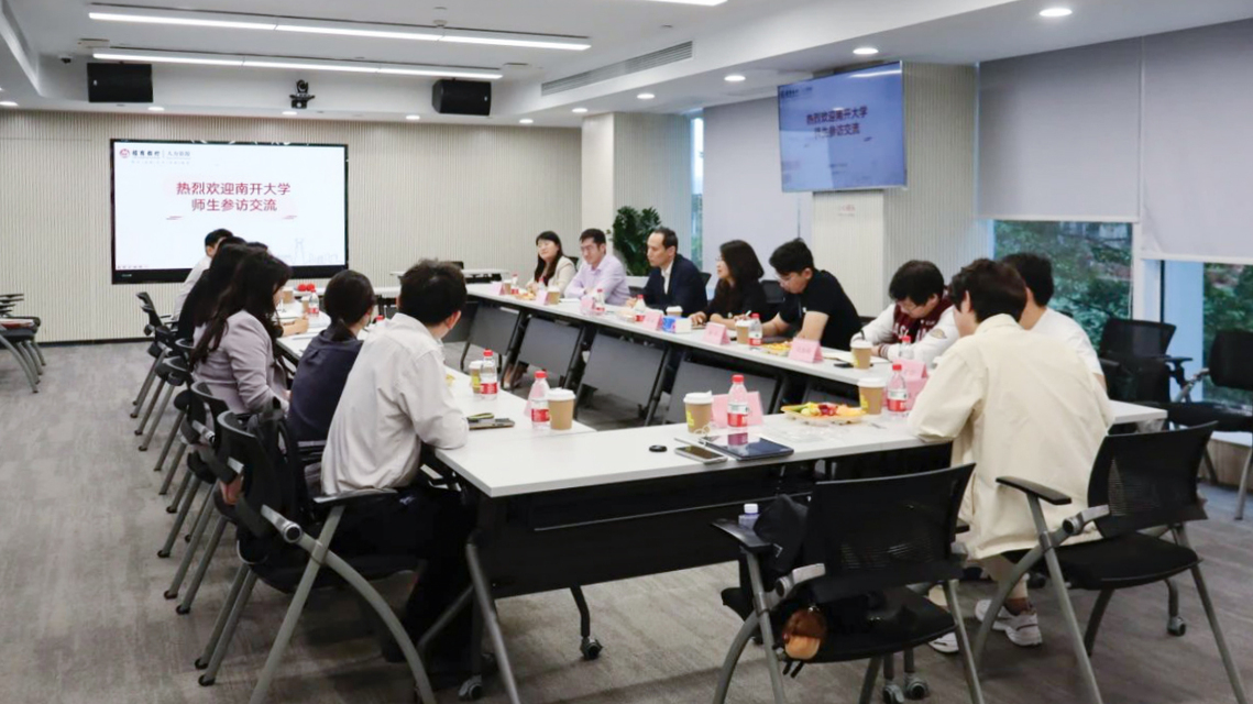 在深圳前海金融控股有限公司,南开员工、副总经理舒东及前海管理局相关负责人等就公司发展现状、博士生招聘、博士后培养等话题与师生进行充分交流,并共同参观前海深港基金小镇,感受深港基金生态圈建设成就。