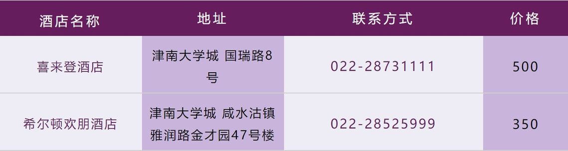 本次会议不收取会务费,食宿、交通费用自理。会议周边酒店推荐如下: