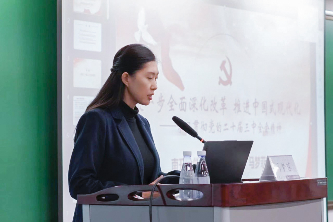最后,马梦菲再次强调,党的领导是进一步全面深化改革、推进中国式现代化的根本保证。她表示,希望同学们能够深入学习领会党的二十届三中全会精神,胸怀理想,脚踏实地。她鼓励同学们将个人奋斗融入国家发展的时代洪流,勇于担当,善于作为,以实际行动为全面深化改革、推进中国式现代化贡献青春力量。