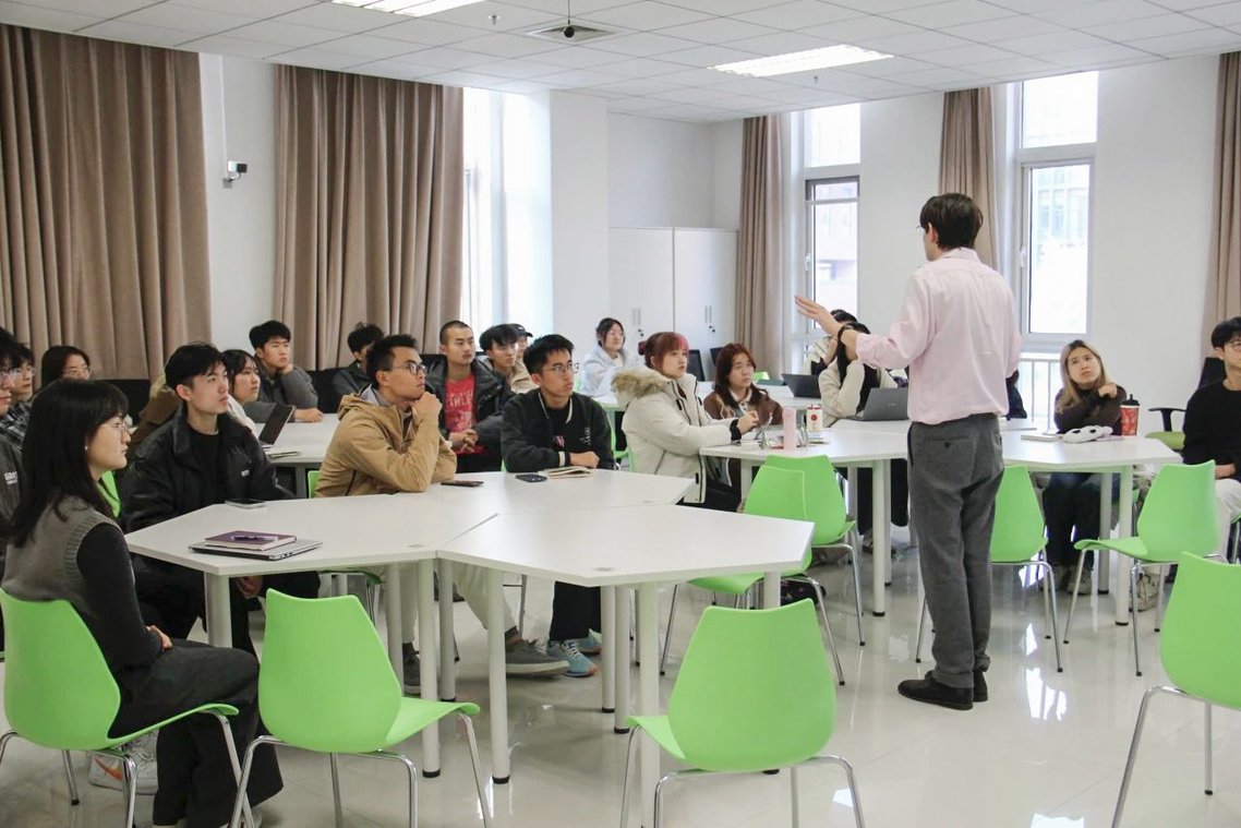 讲座伊始,Andy着重指明了雅思考试的目标是“Assess the English language ability of people who intend to study or work where English is the language of communication”(评估在英语交流地区学习或工作的人的英语语言能力),并以此强调了雅思考试的重要性和考核侧重点。随后,他深入剖析了雅思考试的四大模块——由听力、阅读、写作和口语四个部分共同构成,详细地为同学们指出了题型结构和相应评分标准,为大家接触相关题型和规划备考策略指明了方向。他分享说,对有意向留学的同学来说,优秀的口语能力有助于在国外更好地沟通交流。