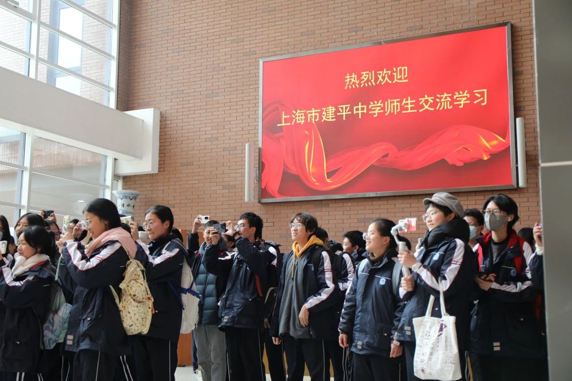 在betway88西汉姆联大厅,副经理贺佳、李泽广热情欢迎来访师生,上海籍2024级本科生许致恒精心准备并弹奏了建平中学校歌和bw必威西汉姆联官网校歌,展现了对建平中学师生来访的尊重,更促进了两校文化的融合,赢得在场师生的阵阵掌声。