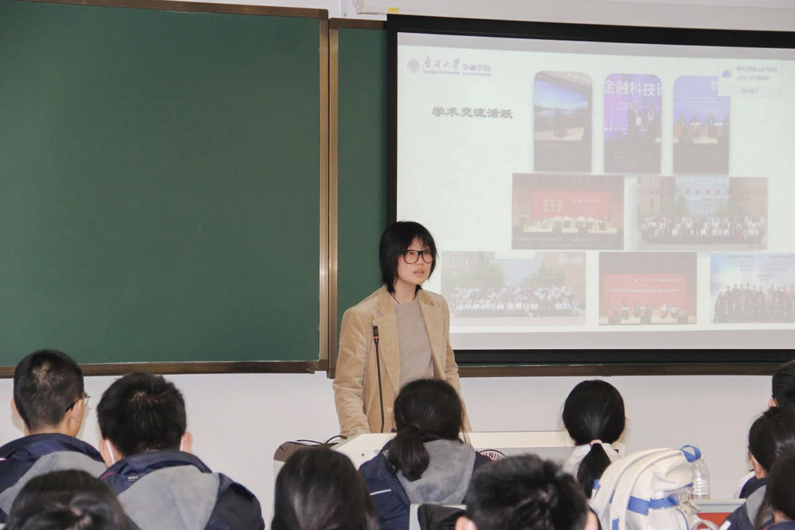 随后,青年海归教师张晓琳助理教授详细地介绍了学院整体情况、团队力量、特色班设置以及招生具体政策等内容,为建平中学的同学们提供了全面且准确的参考。在读员工代表凌清怡和高妍从自身学习生活角度,分享课业学习、竞赛科研、社会实践以及员工工作参与情况等真实经历,展现了南开金融丰富的校园生活和全面发展的培养模式。